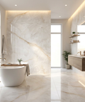 This 24"x48" porcelain tile is inspired by the beauty of natural onyx, this porcelain tile features warm, earthy tones accented with delicate brownish-gold veining, bringing a rich, inviting ambiance to any room. Crafted in a large-format 24" x 48" size with a glossy finish, Zahara Onyx is perfect for creating seamless, high-impact surfaces on both floors and walls. The random face variation ensures a natural and dynamic appearance, making every installation unique and full of character. Designed for timeless beauty and built for durability, Zahara Onyx is an excellent choice for both residential and commercial spaces seeking a sophisticated yet grounded aesthetic.