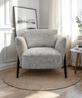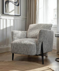 A touch of effortless comfort. Wrapped in a soft tweed fabric, this chair features sleek front metal legs that seamlessly integrate with the frame, creating a clean and cohesive look.