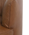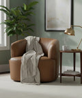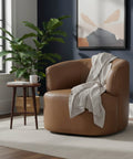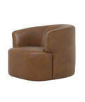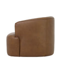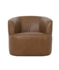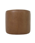 Upholstered in full-grain leather with a choice of deep moss or antique sienna, this swivel chair balances bold color with comfort. The 360° base allows smooth rotation, making it adaptable across seating layouts.