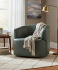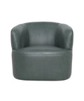 Upholstered in full-grain leather with a choice of deep moss or antique sienna, this swivel chair balances bold color with comfort. The 360° base allows smooth rotation, making it adaptable across seating layouts.