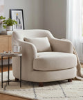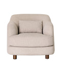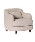 This club chair offers a cozy, welcoming seat with the same loose cushions and accent lumbar support. Its sculpted silhouette and rubberwood legs make it a standout piece from every angle.
