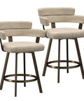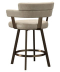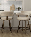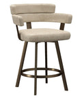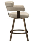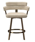 Modern and elegant with a little bit of fun - the perfect combination for unforgettable furniture pieces. These counter-height stools have a full 360° swivel seat, with thick cushioned upholstery on the curved arms and seat. Perfect for leisurely breakfasts on the weekends or for the kids to do their homework while dinner is being prepped. Aged gold finish on the metal frame and vintage ivory faux leather create an elevated look for that perfect high-end look.