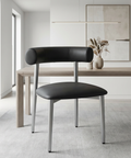 The Barbara chair makes every meal a stylish affair. Crafted with the essence of Scandinavian design, its distinctive curved backrest and sleek lines redefine sophistication in any dining space. Ensuring optimal comfort, its generously padded seat invites you to linger over meals, while its sturdy metal frame promises long-lasting durability. With this chair as the centerpiece, your dining room becomes the stage for unforgettable moments.