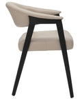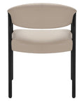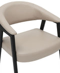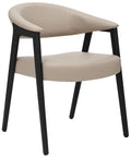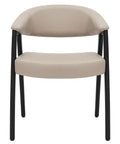 The rich combination of mushroom faux leather and brushed black wood frame is irresistible on this armchair. Sturdy, curved back and seat with foam, web and springs means this chair is built for those long, lazy dinners and hours of conversation around the table. Perfect for casual or formal dining spaces, or as accent seating in any room of the house.