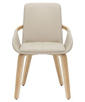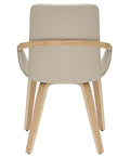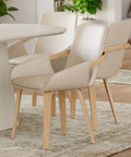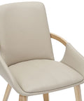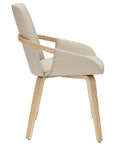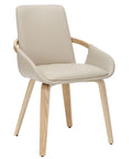 The wrap-around frame of this chair looks like it's reaching out to give you a warm embrace. Accept the invitation and take a seat on this comfortable beauty. The modern combination of the sand-toned faux leather and the natural-finished bentwood legs creates an elevated look. Matches well with a variety of dining table styles and colours.