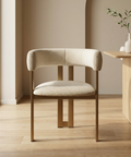The Clarissa dining chair is a standout addition to any modern dining room. Its sleek design radiates sophisticated charm that aligns perfectly with contemporary interiors. Combining elegance and comfort, the beautifully curved backrest flows seamlessly into armrests, providing support during long conversations around the table. With its sturdy metal base crafted for long-lasting durability and its undeniable aesthetic appeal, this chair is an essential piece for any home decor.