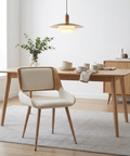 When the best of mid-century modern design is integrated perfectly into the current design world, you get gorgeous pieces like this dining chair. The bentwood frame and metal legs are beautifully finished in a natural wood finish, and the cushioning is all upholstered in a textured fabric, creating the perfect modern mid-century piece that will work in any formal or casual dining space.