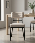 The Phoebe Cream Dining Chair brings a fresh, modern elegance to your dining space with its soft neutral upholstery and sleek black metal legs. Its gently curved backrest offers comfortable support, while the padded seat makes everyday meals and long conversations feel effortless. The clean silhouette pairs beautifully with both light and dark dining tables, making it a versatile choice for any home décor. Durable, stylish, and wonderfully comfortable, this chair adds a bright, contemporary touch to any kitchen or dining room.