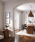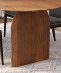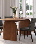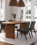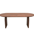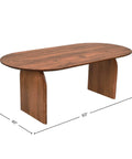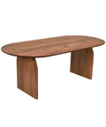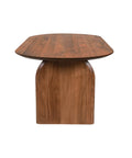 A bold expression of organic form, this dining table is crafted from solid acacia with soft curves and sculpted edges. Its oval top and panel legs evoke a grounded, architectural presence while maintaining a natural warmth.