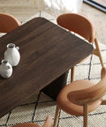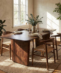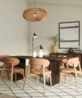 A compact dining solution with sculptural legs and a warm mango wood finish. Its space-conscious design seats six comfortably without compromising modern style.