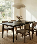 Simple yet brilliant, this dining table combines natural mango wood with an elegant frame. .The angled legs and edges give it a unique look that allows it to fit into any aesthetic or style. Available in multiple sizes and colours.