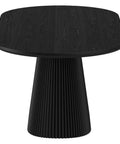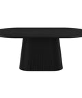 Elevate your dining experience with this oval pedestal base dining table, a hallmark of high-end designer inspiration. Featuring a beautifully reeded wood base, this table exudes timeless charm, offering a refined focal point for any dining space. The bevelled table top and the visible wood grain throughout add natural beauty and organic texture.