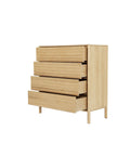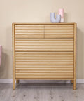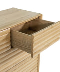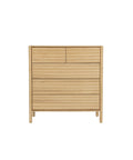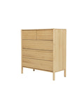 This tall chest maximizes vertical storage with five drawers in a clean-lined silhouette, ideal for compact or shared spaces.