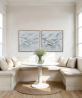 Hand-painted in soft tones with plenty of texture, and framed in medium walnut, this set of two wall art canvases will complete the look of any modern or transitional setting. Displayed side by side, stacked or split up, these paintings offer two-way hanging for styling flexibility and maximum impact.