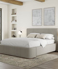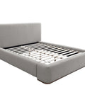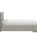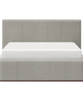 Little details go a long way with this gorgeous bed. The thick cushioning on the head and footboards and all along the side rails ooze comfort. The curved edging on the footboard, with the solid wood walnut base oozes style. The two-toned, mushroom colour textured fabric is the ideal finishing touch, creating the perfect piece for your sleep sanctuary.