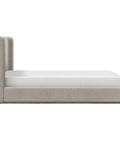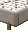 Create an elevated look in your sleeping space with this beauty of a bed. The elegant curves on the headboard are balanced perfectly with the solid wood, walnut-finished base and legs. Perfect in a primary bedroom or a when transition your teen's room to a more grown-up space.