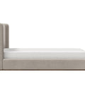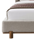 Create an elevated look in your sleeping space with this beauty of a bed. The elegant curves on the headboard are balanced perfectly with the solid wood, walnut-finished base and legs. Perfect in a primary bedroom or a when transition your teen's room to a more grown-up space.