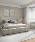 -Soft, Opulent Fabric On Pillow-Tufted Headboard, Footboard & Rails