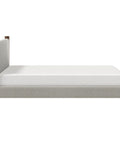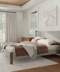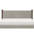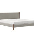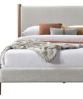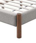 Mid-century style doing what it does best with this timeless bed. The solid wood posts are finished in a warm walnut. The two-toned mushroom colour of the texture fabric will work well with various décor themes and colours. Great for a primary bedroom or guest room, or at the cottage.