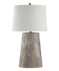 Turn on great style with this handsome hand-painted table lamp. Boasting an eye-catching grey rock finish and a tapered off-white linen drum shade, it delivers texture and a high contrast look to a side table, credenza or bedside table. Use its 3-way switch to customize the lighting the however it’s needed.
