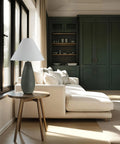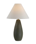 All shades of green are having a real moment in the design world and whether you choose to color drench an entire room with the nature-inspired hue or simply add a touch of it to a space, you’ll be right on trend. This dark olive ceramic table lamp with an off-white tapered shade is a great choice for going green!
