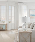 More than a simple light source, this stylish table lamp will bring a sculptural touch to any interior. Designed with enduring appeal, its white finish and coordinating linen drum shade create a neutral focal point anywhere it sits. Perfect for modern or transitional spaces, include one or two in your plans for a striking impact.