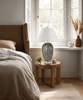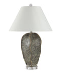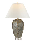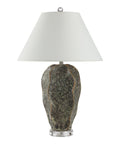 Inject a dash of wonder into your decorating scheme with this geode-inspired table lamp. Featuring a faux stone body, its hand-painted dark green finish is the perfect complement to any interior. Topped off with a high-contrast off-white linen drum shade, this lamp will bring light and drama anywhere you place it.
