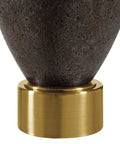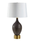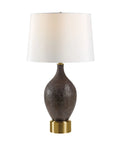 Add your designer’s touch to any interior by including metal accents in your decorating scheme. This table lamp makes it easy thanks to its generously proportioned warm brass-plated base that perfectly complements a glass body hand-painted in rich brown. Finishing off the look is an off-white faux silk shade for lighting perfection.