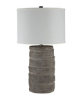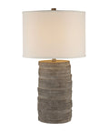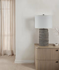 The perfect finishing touch with functional purpose, this stylish table lamp is a great choice for today’s neutral interiors. Its warm charcoal grey hand-painted finish, pewter details and off-white linen drum shade unite to light up any modern or transitional space. Try it in a bedroom, living room, dining room or entryway for an instant update.