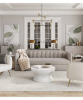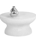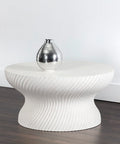 With a mesmerizing shape, this round coffee table is well defined by its stunning swirl indentation on the base.