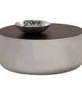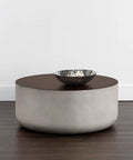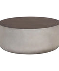 This bold, drum style coffee table will bring form and function into any space. Crafted entirely from concrete, the round base features a grey finish with a handsome dark brown timber wood finished top.