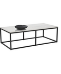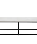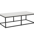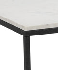 With an understated design, this modern coffee table is made distinct by clean lines. Features a white polished natural marble table top with a matte black powder coated steel base. Coordinating console and end tables also available