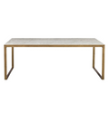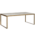 A beautiful modern marble coffee table. Tabletop features a 1" layer of white Italian marble supported by an antique brass iron frame. Can be paired with our low profile Evert coffee table for added dimension.
