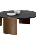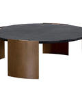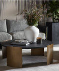 Modern design meets mixed materials in the Gallus Coffee Table. The black glass fibre-reinforced concrete table top has a soft slate effect to give the piece an added texture. Curved powder-coated steel legs in an antique brass finish give an added contrast that ties the look together. Rubber felt protectors included.