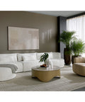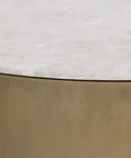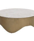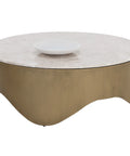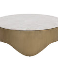 The Guinevere Coffee Table will be the crowning centrepiece of any living space. Characterized by a curvy base handcrafted from powder-coated iron with an antique brass finish. A crema Italian marble tabletop brings out the warm tones in this piece.