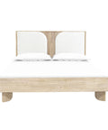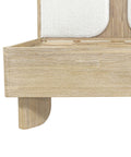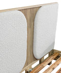 Introducing this maliciously King Bed, a masterful fusion of two exquisite materials that create a harmonious and luxurious aesthetic. Crafted from solid acacia wood and featuring an upholstered headboard in sumptuous boucle textured fabric made from 95% Polyester, 5% Acrylic fabric mixture , this bed epitomizes both elegance and comfort.