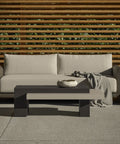 With an eye-catching design, this striking coffee table exudes an impressive contemporary style. Features a base crafted from dark brown concrete with a fascinating timber effect. Completed with an accenting grey concrete slab.