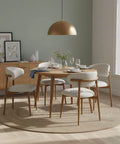 Featuring a modern fabric blend, this dining chair complements any interior while its sturdy oak frame ensures lasting durability.