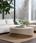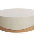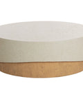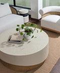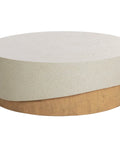The Patras Coffee Table's stunning sculptural form makes it the ideal centrepiece for any space. Fully constructed from concrete, this table features a textured high-low top that embraces a round base cleverly designed to resemble rustic oak wood.