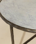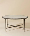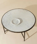Refined white Banswara marble balanced with the artful look of hand-hammered metal elevates the traditional style of the Riyaz Coffee Table. Its rounded shape and complimentary tones allow this coffee table to enhance any living space.