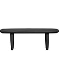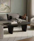 This low-profile coffee table features a sleek black oak finish and solid construction, ideal for casual living spaces.