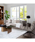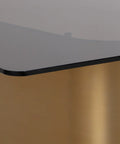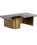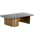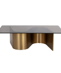 Bold and elegant, the Whisper Coffee Table is a staple for any living room area. The gorgeous brown tones of the tea tempered glass tabletop provide a gorgeous contrast to the gold S-shaped stainless steel base.
